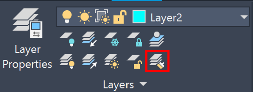 Isolating a layer or group of layers is useful when you solely want to work on objects on certain layers. Simply select the layer(s) you want to isolate and type LAYISO in command line. Alternatively, you can also click on the Isolate icon on the Layer Tab.