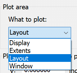 There are four options for plot area in AutoCAD which are explained below: