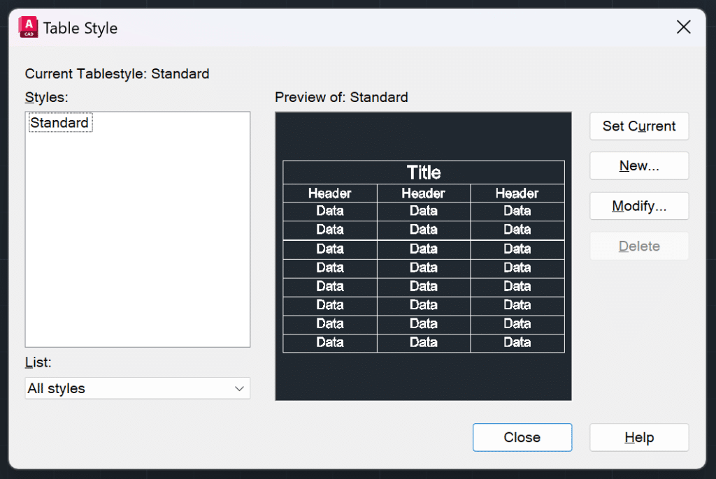 Create Table Styles in AutoCAD